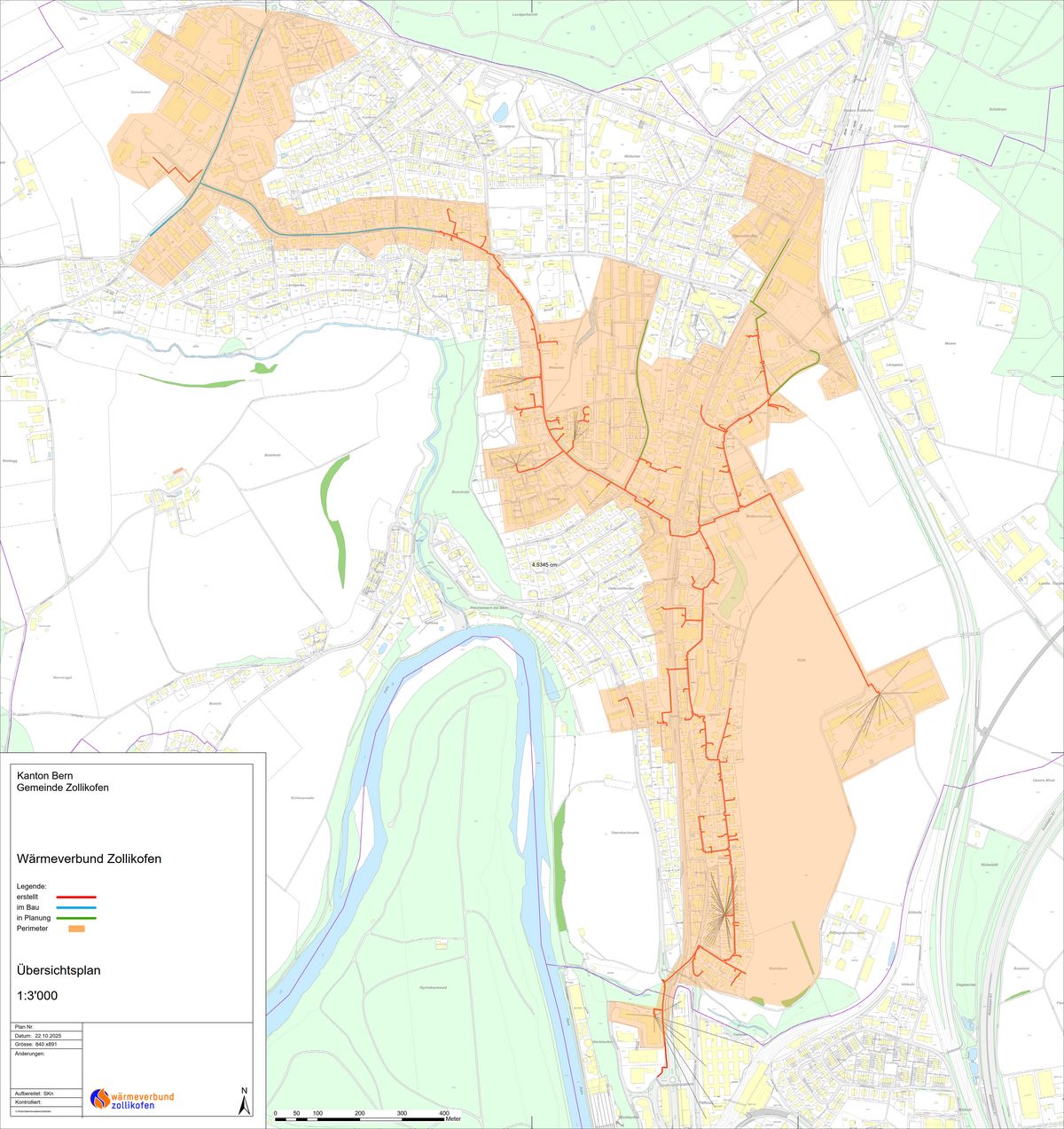 In Zollikofen ist ein neuer Wärmeverbund entstanden. Das Projekt wurde von der Burgdorfer Energieversorgerin Localnet AG bereits im Herbst 2019 gestartet. Seitdem ist wie abgebildet auf dem Plan schon einiges geschehen. Einige Kundinnen und Kunden wurden bereits angeschlossen. Stand per 31.12.2024 haben bereits 65 Kundinnen und Kunden einen Anschluss. Und auch in Zukunft sind weitere Projekte geplant, welche den Ausbau von Zollikofen vorantreiben werden.